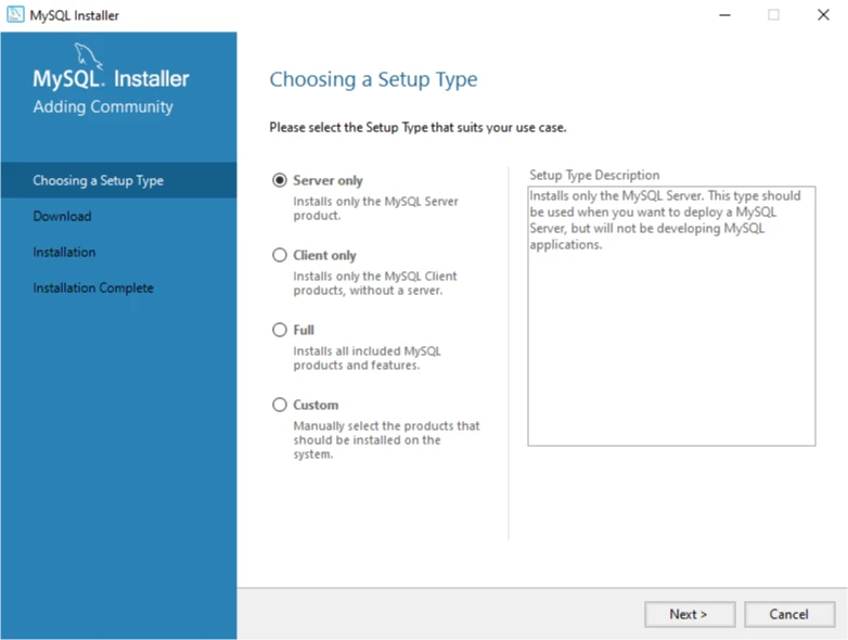 Pro systém Windows je nejlepší stáhnout si MySQL Installer. Můžeš použít webový instalátor nebo si stáhnout plný instalátor. Instalátor tě provede celým procesem.