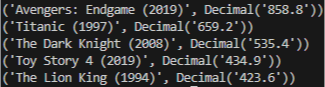("Toy Story 4", 2019, "Animation", 434.9),